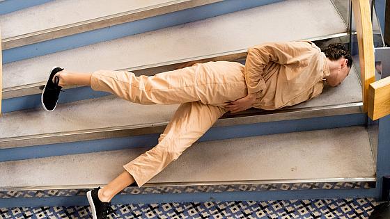 Un corps qui ne bouge pas par sa propre volonté mais par une inclinaison de l’espace, qui déplace le corps en avant.