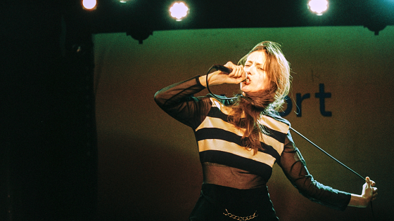 Stéphanie Aflalo est tout à la fois auteure, compositeure, interprète, comédienne, pianiste, guitariste, danseuse… et bien plus encore. Forte de cet impressionnant CV et transformée pour l’occasion en bête-de-scène-totale, elle invente une variation critique et ludique des signes qui tissent la grammaire du concert pop. Un faux contact dans la machine du spectaculaire propre à la culture de masse.