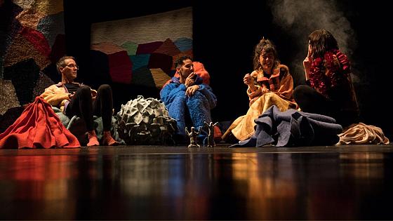 Comment se fabriquent les histoires et quel rôle jouent-elles dans nos vies ? Comment, à force d’éviter le conflit, le chaos surgit, inévitablement ? Quelqu’un viendra-t-il sauver la situation ? Dans un décor en laine recyclée, quatre interprètes font comme si tout allait bien et qu’ils étaient d’accord sur tout. Mais la réalité n’est pas si simple, surtout quand l’imprévu fait irruption : il sera question d’un chien bleu, d’un salon, de danse dans un salon, d’un beau tapis, d’avoir le premier rôle et surtout… le dernier mot. Jouant sur l’effet de surprise et les rebondissements, la nouvelle création de la Compagnie L’Unanime, accueillie la saison passée avec Petite Nature, en étonnera plus d’un.